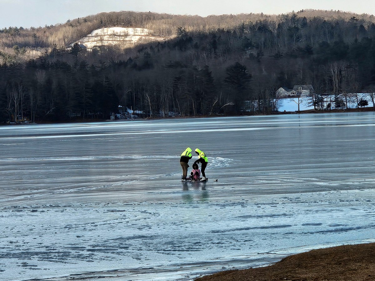 Three people were seen ice fishing Sunday afternoon, Jan. 5, near the boat launch at Brettun’s Pond in Livermore.