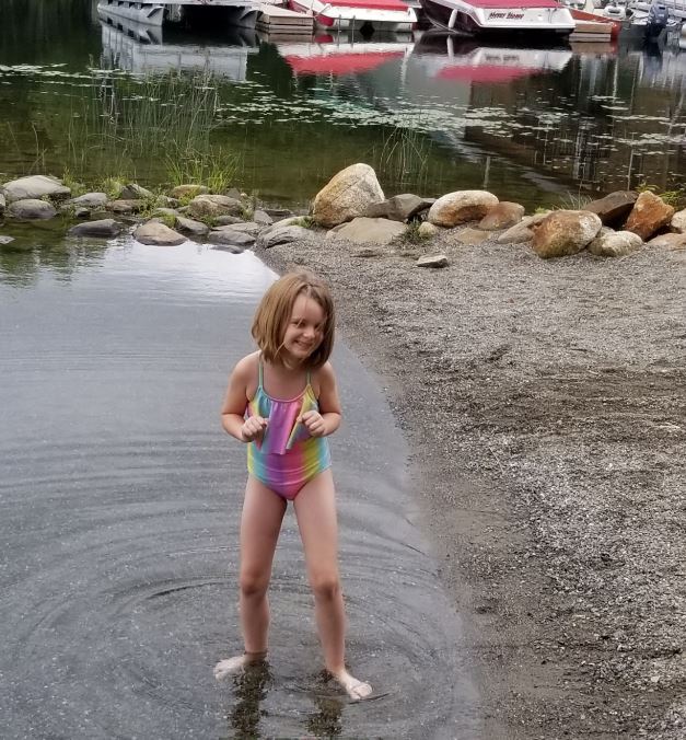 Jemma Gauthier, 6, tested the water with her toes before taking a dip with her grandmother.