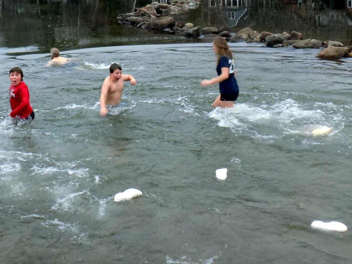 Bill Marceau was the inspiration for some participants in the Polar Bear Dip Saturday afternoon, Dec. 2, at Clearwater Lake in Industry.