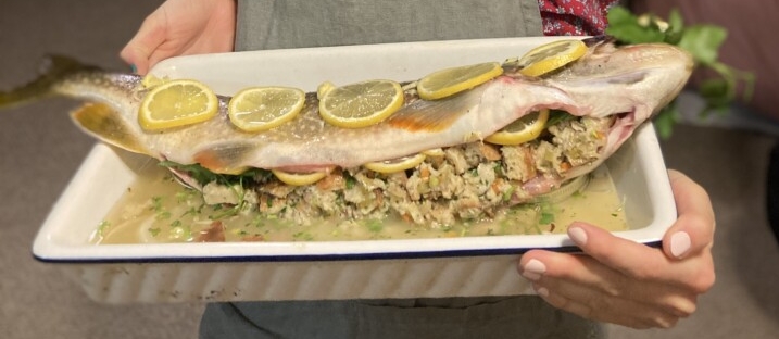 Roasted and stuffed Lake Trout