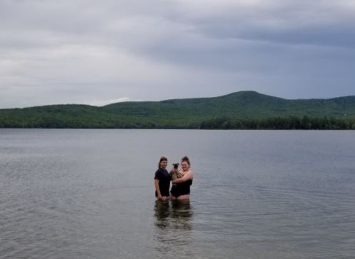 Sisters Rose Prest-Morrison of Limerick and Merrily Welch of Temple used a pump to inflate a paddleboard Tuesday.