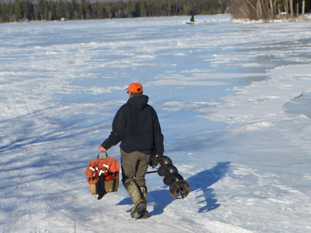 Bruce Bowen had hopes to catch a trout or salmon Tuesday on Clearwater Pond in Industry.