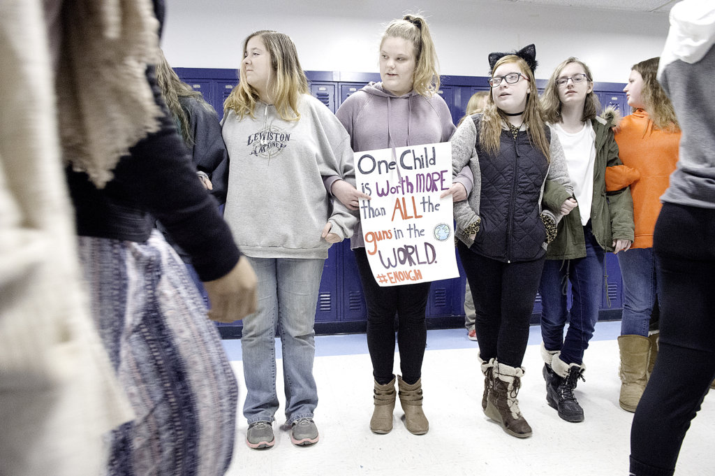 LEWISTON — Hundreds of students linked arms along four long hallways Wednesday morning for a moment of silence at Lewiston High School. They want to be safe and they want something done. Ninth-grader Kaylee Bouchard held a sign that read, “One child is worth more than all the guns in the world.” “If we all […]