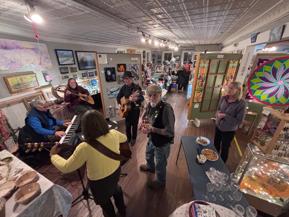 The Kingfield Friday Artwalk on Feb. 7 featured live music, local artists, and community engagement at the High Peaks Artisan Guild, with the next event set for March 7.