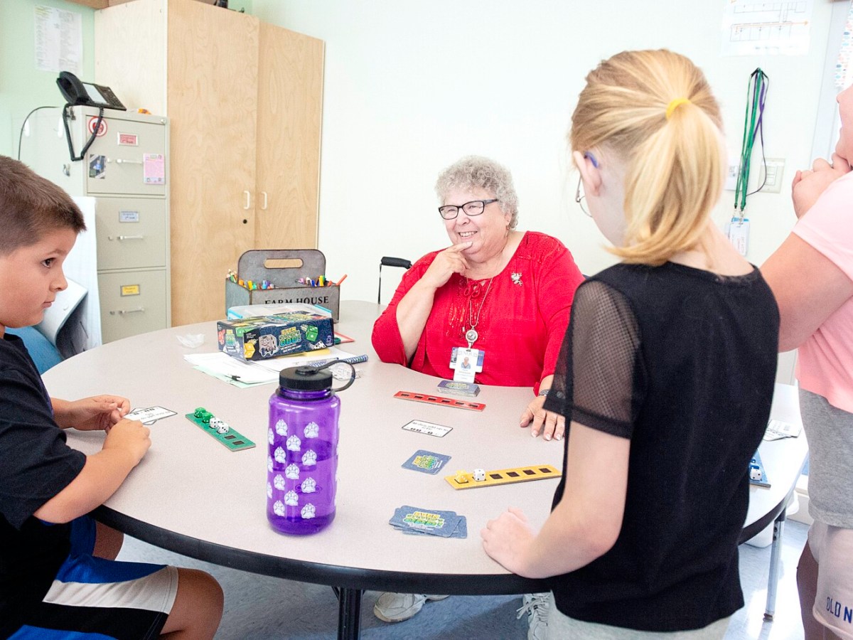 The volunteer foster grandparent is an emotional support for students, especially as they settle in for a new school year.