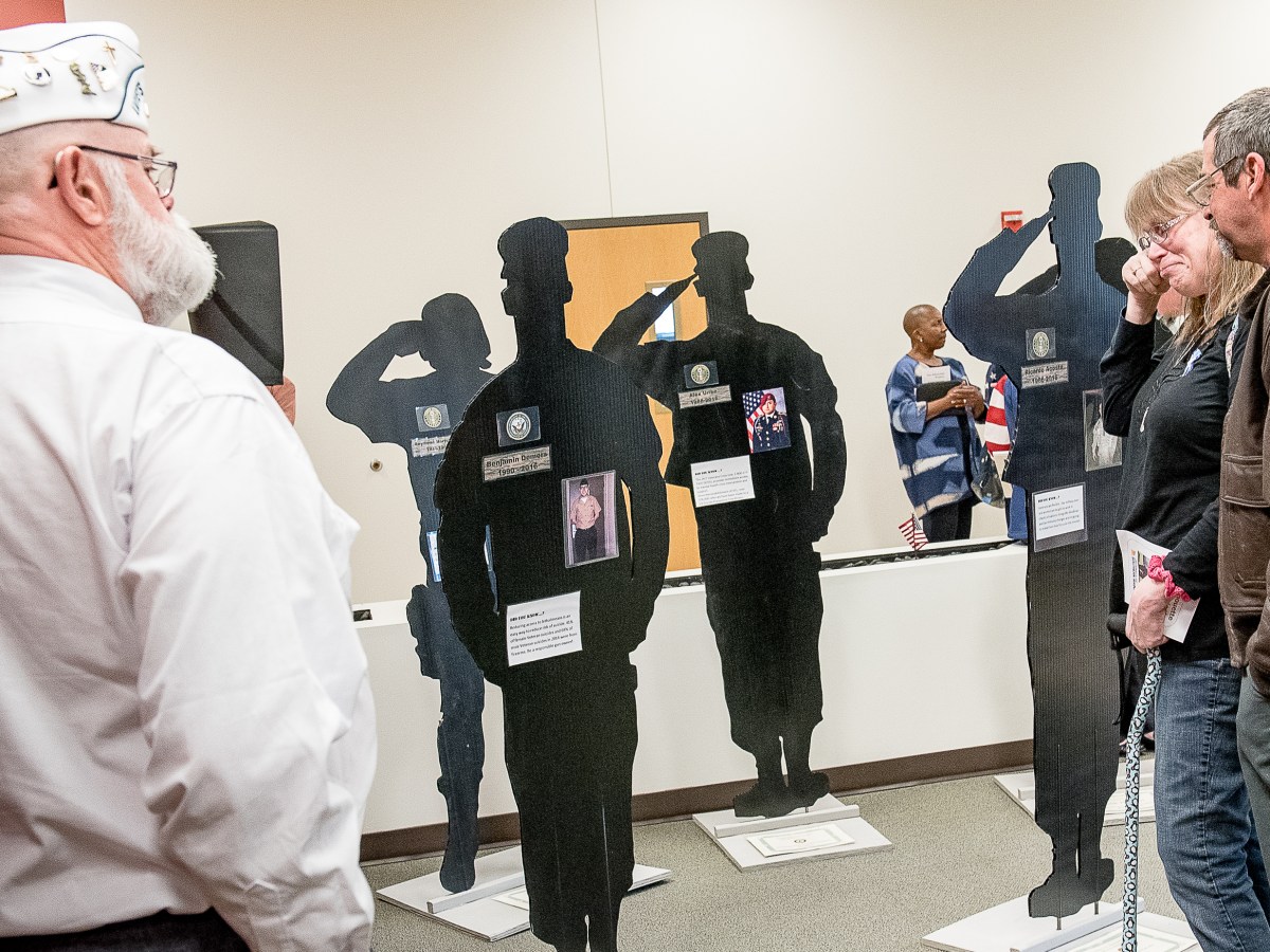 Veteran Willie Danforth, left, of Auburn looks on as Penny Douphinett is comforted by veteran David Armontrout, who does not know her, after she’s overcome with emotion while looking at the silhouette of her son, Benjamin Demers of Auburn. His silhouette is one of 22 that represents the number of veterans that commit suicide every […]