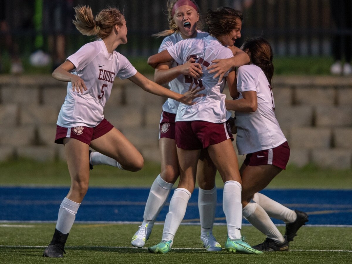 Girls soccer: Freshmen Gabby Gerry scores in the final seconds to give the Red Eddies the win in rivalry tilt.
