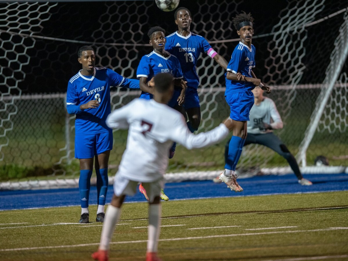 Boys soccer: After the Red Eddies tie the game, the Blue Devils score two quick goals before halftime and hold on for a rivalry win in front of a large crowd at Don Roux Field.
