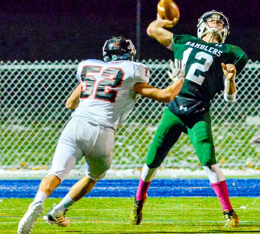 Quarterbacks Tommy Springer of Marshwood and Carter Edgerton of Biddeford and running back Tyler Bridge of Wells lead West squad to a 60-14 victory.