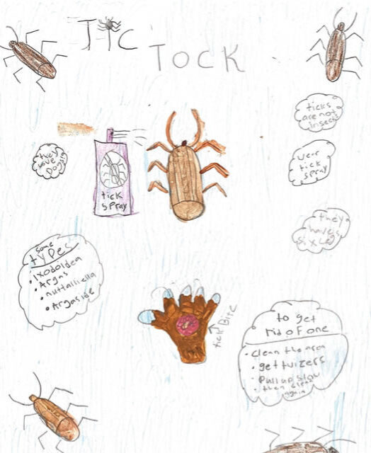 Students at Stratton Elementary School designed posters on the theme “Tick Wise.” Each poster illustrated at least one tick prevention tip.