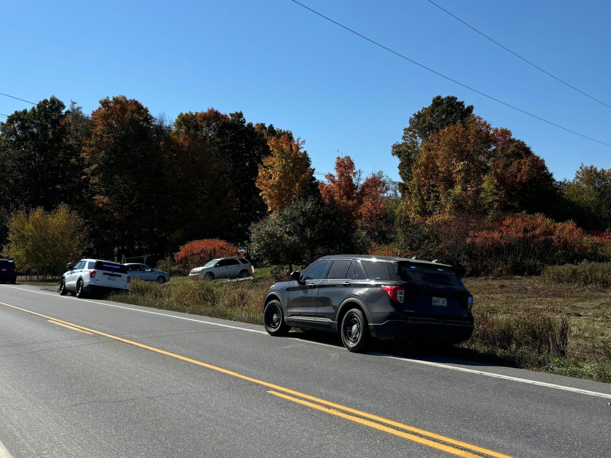 A heavy police presence was visible Tuesday outside a home and in a field on Main Street.