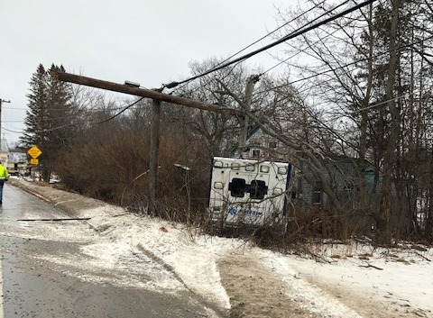 Vehicles all over southern and central Maine slid off slick roads and took out multiple utility poles, resulting in a few injuries.