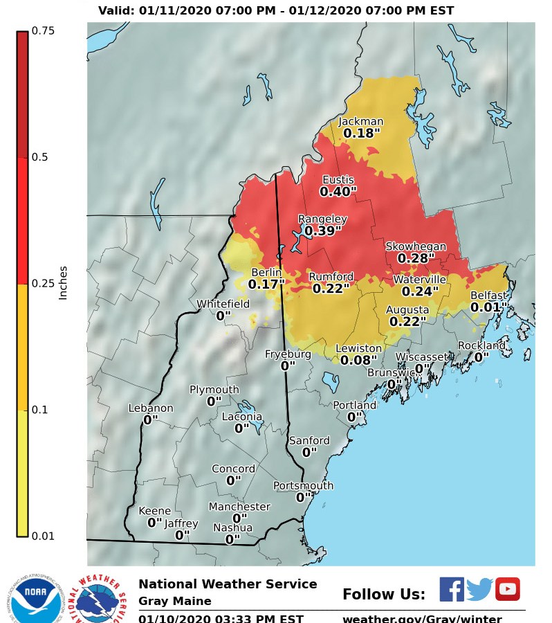 The western mountains and foothills could see up to a third of an inch of ice on Sunday, but the Portland area will probably just see rain.