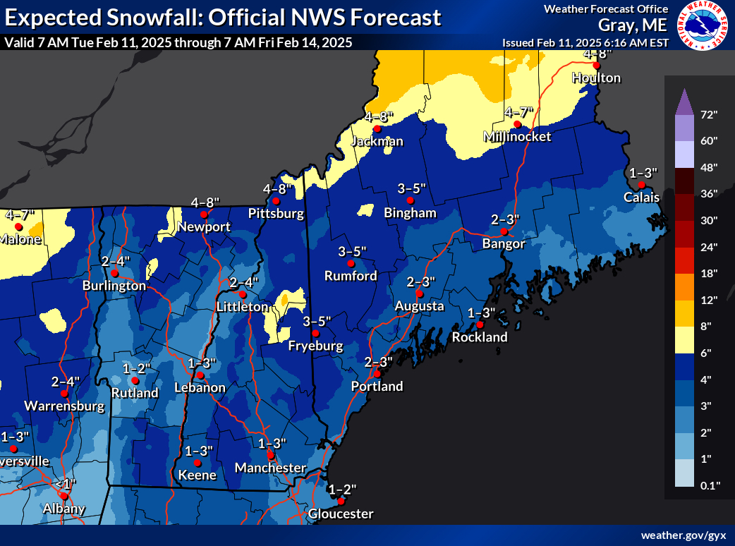 Androscoggin, Franklin and Oxford counties can expect less snow than what’s coming to southern Maine.