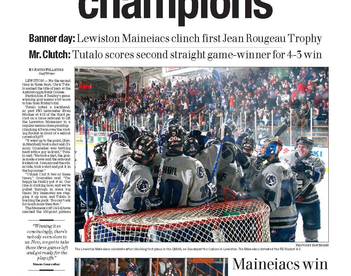 In 2006-07, the Lewiston Maineiacs captured the hearts of Lewiston-Auburn-area hockey fans. Here at the Sun Journal, we captured the Maineiacs, through photos, words, online blogs and many other media. Here is a display of some of the best page design work the Sun Journal did that year while chronicling the team’s efforts.