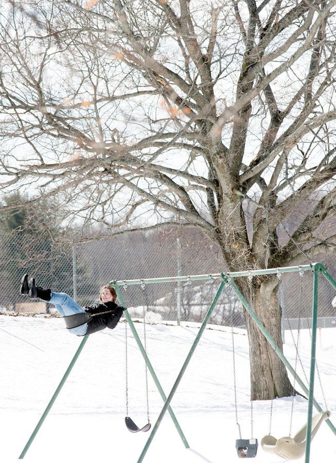 Trinity Robitaille swings in Marcotte Park in Lewiston on Friday. She said she is spending time in her favorite park before the next big storm makes it impossible to get to. “This is my little spot,” she said. More snow is expected Wednesday. (Daryn Slover/Sun Journal)