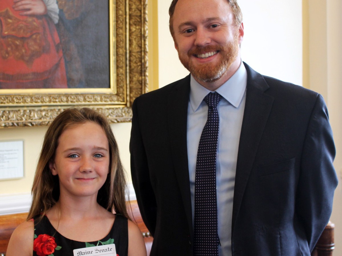 McMahon Elementary School student Ryleigh Pelletier served as an Honorary Page in the Maine Senate on Jan. 18. Pelletier was the guest of Sen. Nate Libby of Lewiston. She took the picture below with Libby following the Senate session, when she practiced gaveling into order. Pelletier hopes to someday become the first woman president of the United States.