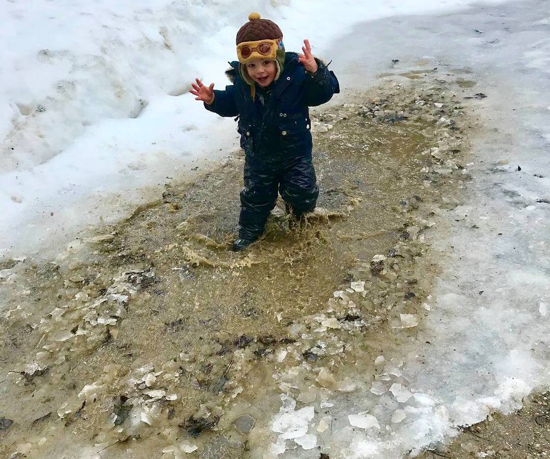 Mac Field, who turns 2 next week, plays in his favorite puddle at his home in Newry on Thursday. (Candace Hall photo)