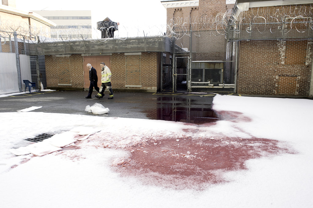 Auburn Fire Chief Geoff Low, left, and Battalion Chief Don Flanagan walk past a patch of home heating oil in the recreation yard of the Androscoggin County Jail in Auburn on Wednesday. About 600 to 1,000 gallons of heating oil spilled when an oil dealer was filling the tank in the basement and a system failure […]