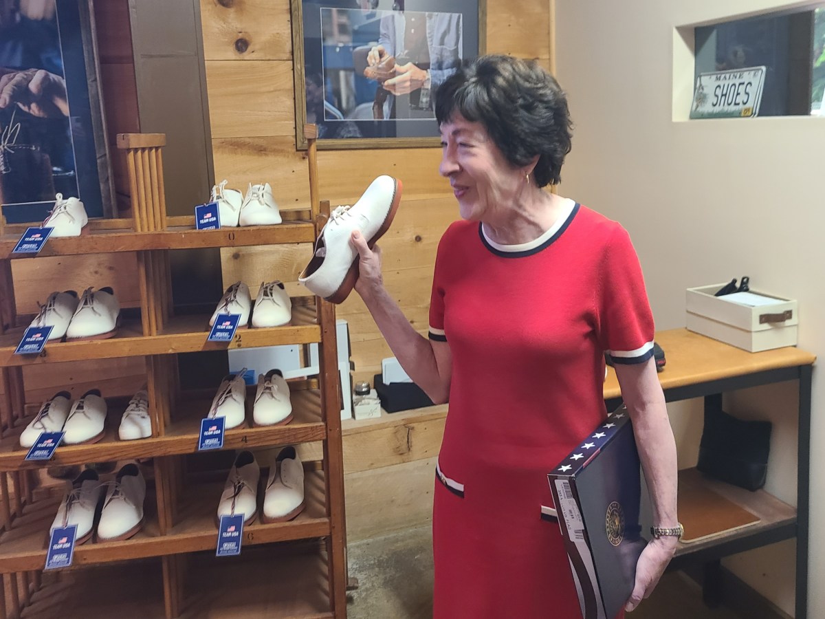 Sen. Susan Collins marvels at Lewiston shoemaker’s work