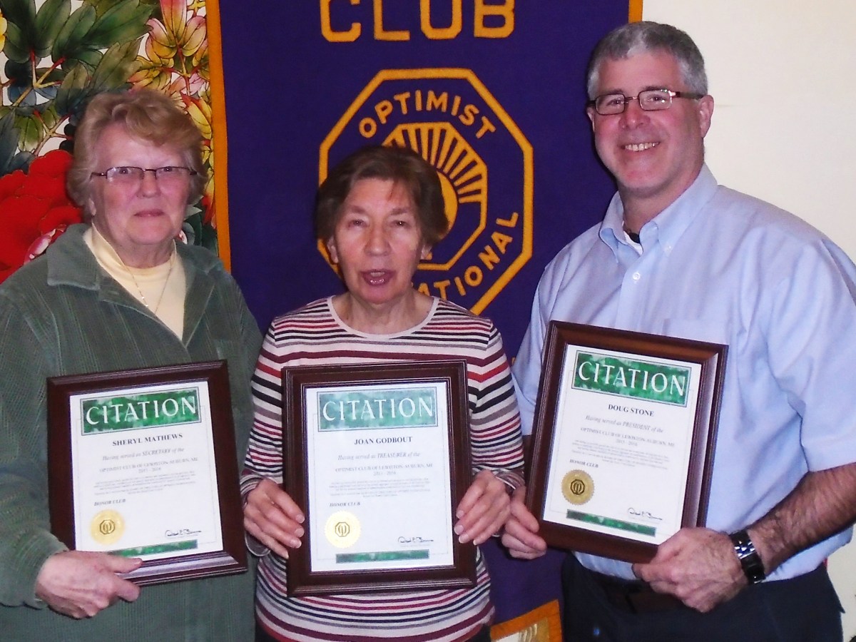 ?Last year’s Lewiston/Auburn Optimist Club Officers are recognized by Optimist International for earning the National Award of “Honor Club.” This award is presented to those Clubs who meet national goals for New Members, Community Projects, and Financial Obligations. Pictured are last year’s Club officers, from left, Secretary Sheryl Mathews, Treasurer Joan Godbout, and President Doug […]