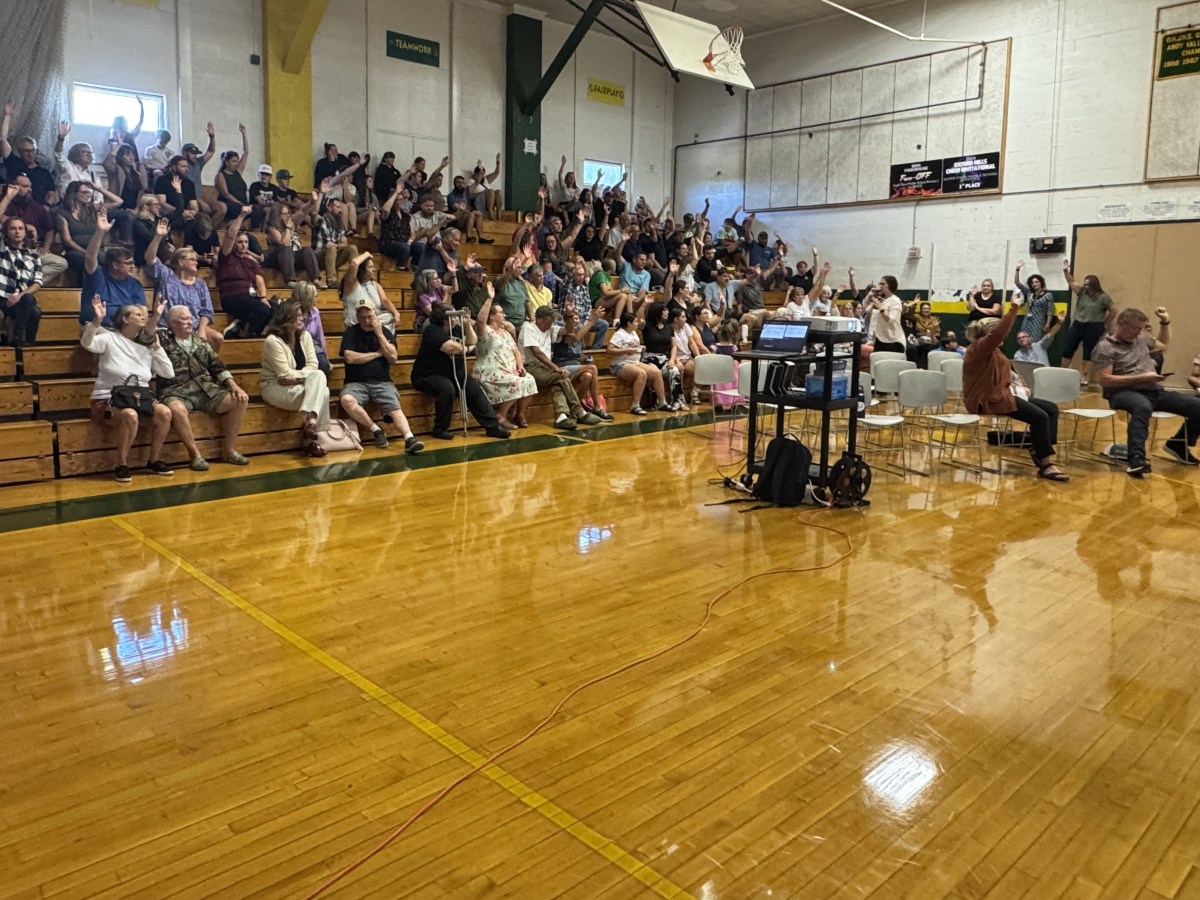 About 150 adults and children attended a Thursday presentation introducing the concept design for a proposed new Oxford Hills Middle School.