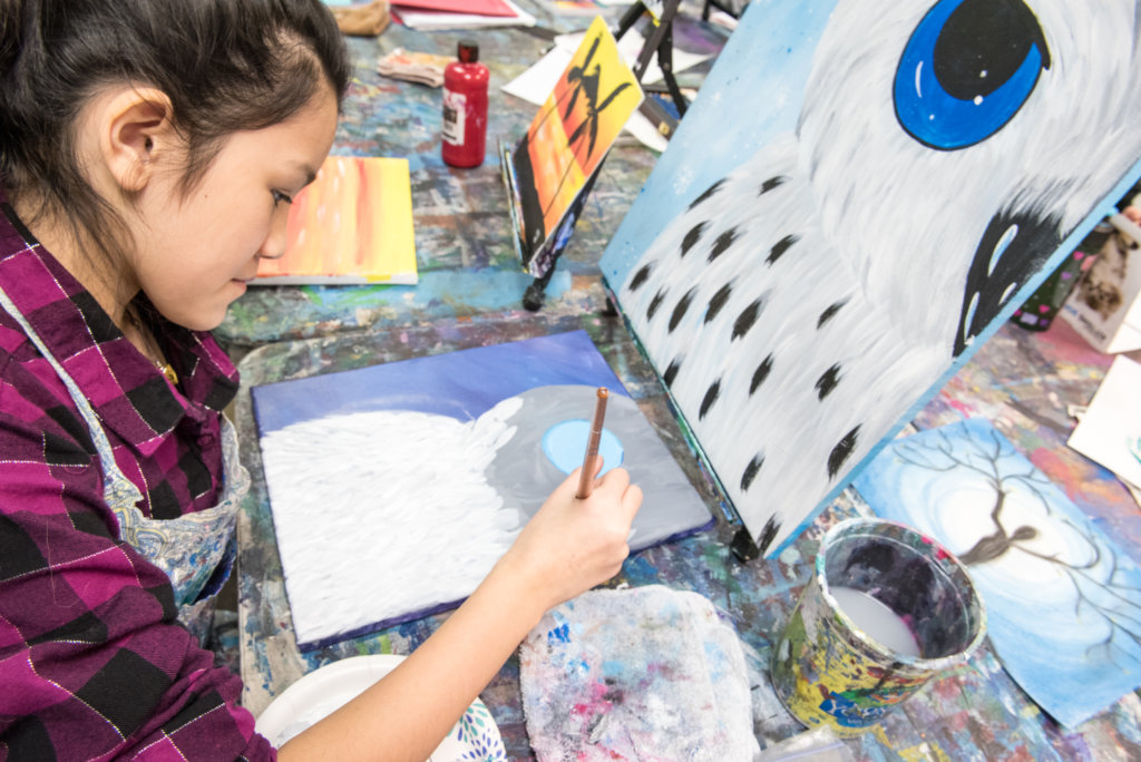 Christina Tancrede, 11, of Lewiston paints during her after-school art class Wednesday afternoon at Wicked Illustrations Studio and Gallery on Canal Street in Lewiston. For information on the studio’s programs and activities, see wickedillustrations.com. (Russ Dillingham/Sun Journal)