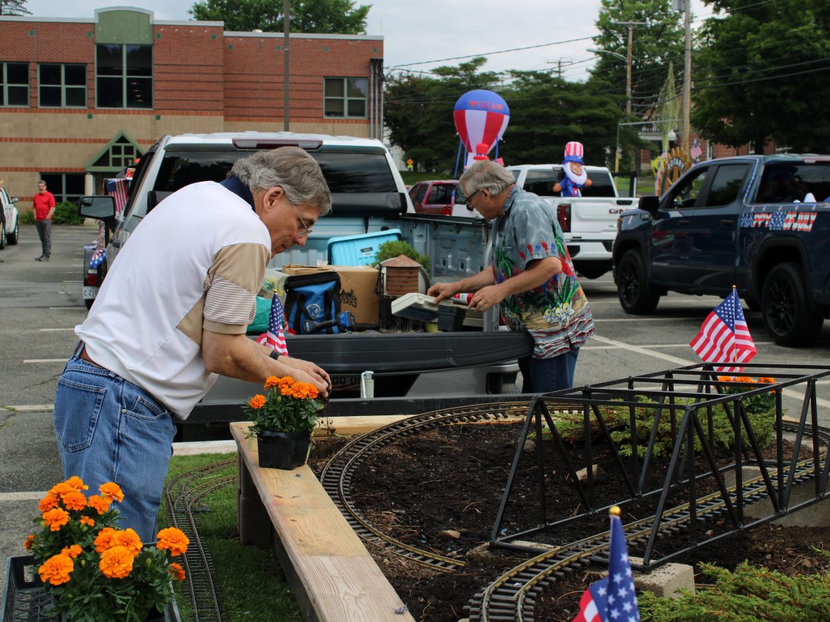 Organizations and other community members gather together to set up parade floats before the Fourth of July parade in Farmington.