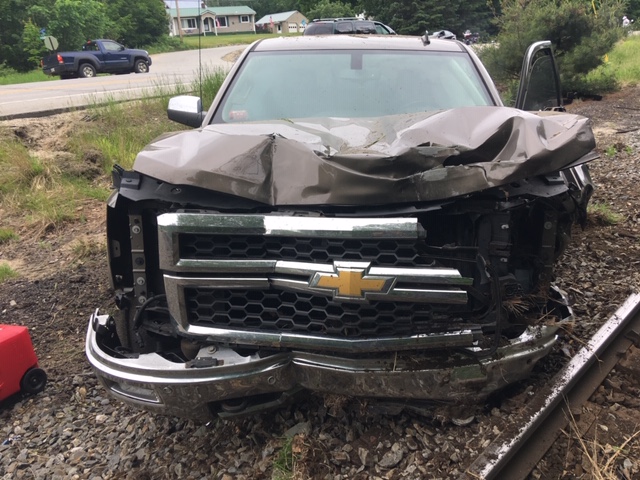 A pickup truck and motorcycle collided on Route 108 in Peru on Tuesday morning.