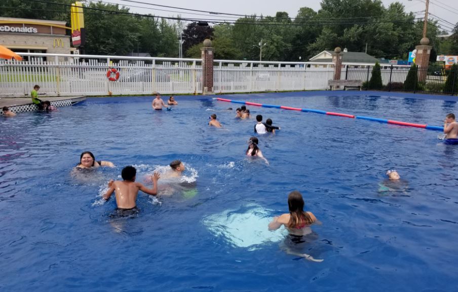 Children in grades three through seven enjoy the water Tuesday in the wading pool at Hippach Summer Camp in Farmington.