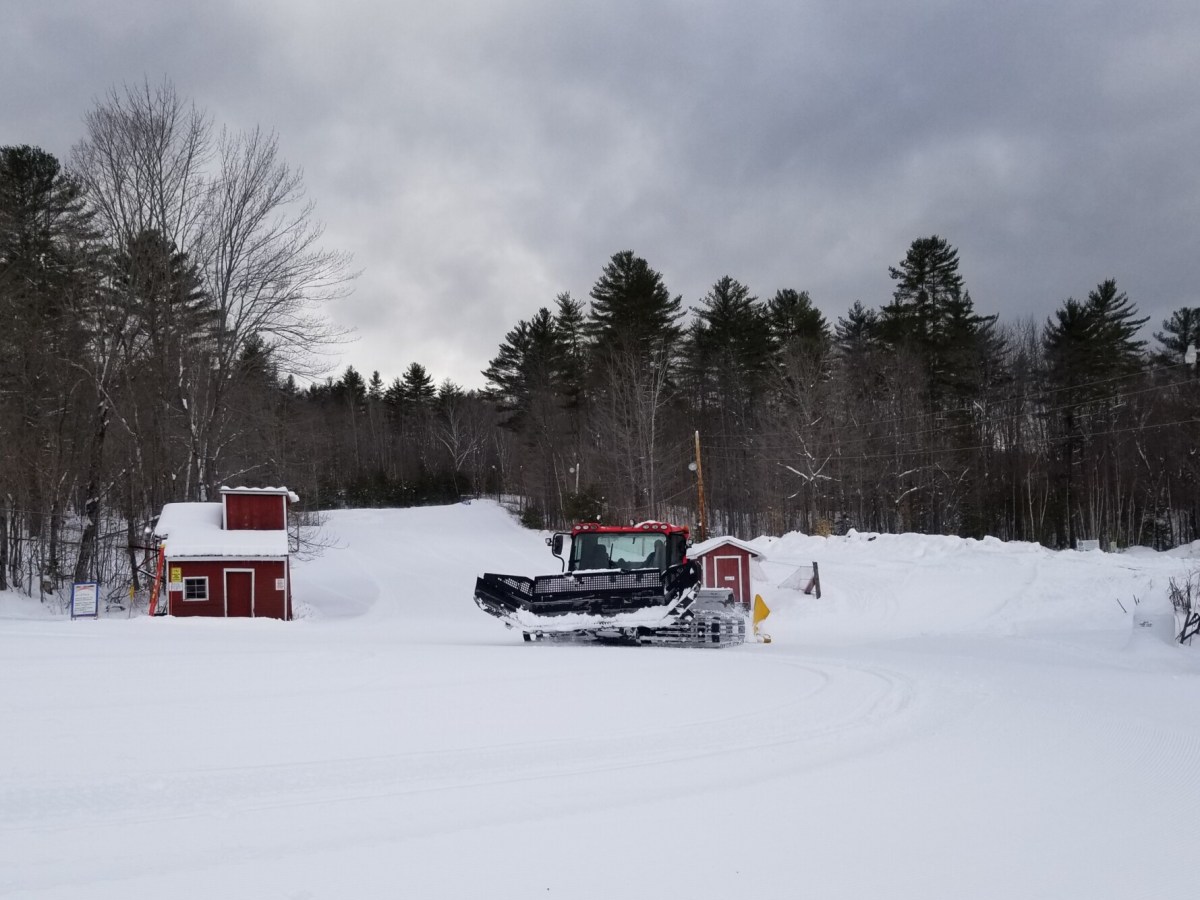 Tim Norton, operations manager at Titcomb Mountain, drives a groomer in a loop to ready trails for skiers.