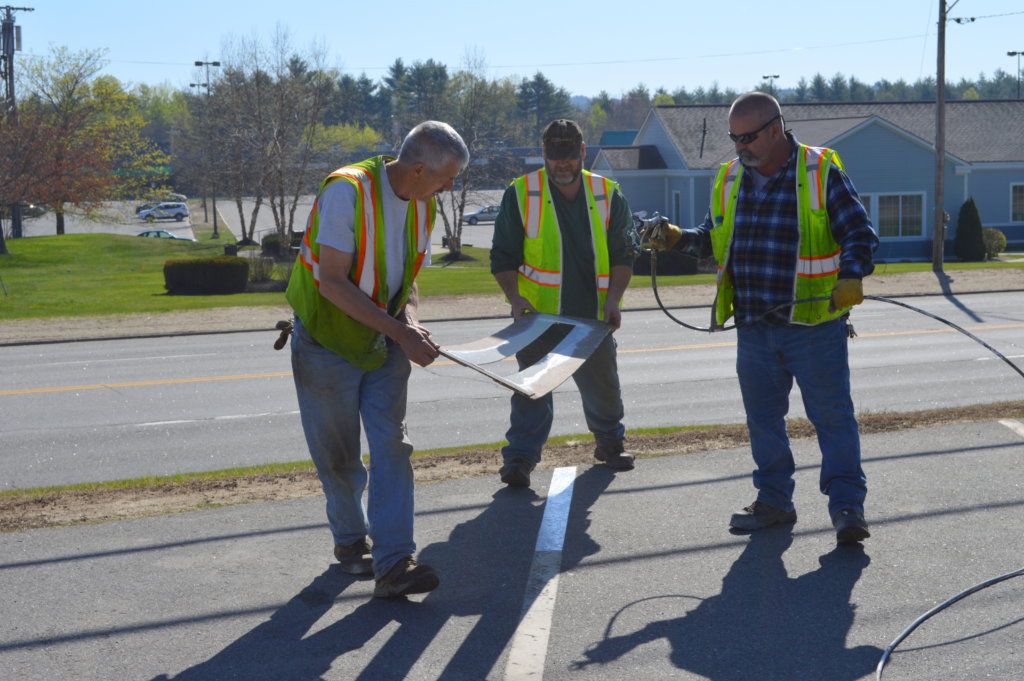 Jay public works employees Fred Richards, left, and Terry Greenleaf, center, move a stencil after Chuck Haskell sprays white paint to stripe parking spaces at the Jay Municipal Building on Wednesday. (Donna M. Perry/Sun Journal) Chuck Haskell, right, of the Jay Public Works Department sprays white paint to freshen up parking space lines at the […]