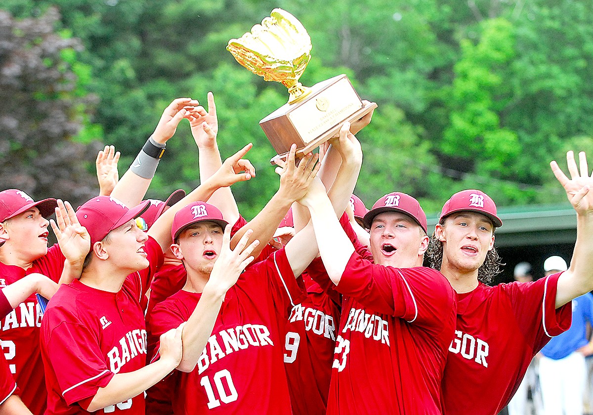 (L-R) Bangor High School (16) Karl Sund, (10) Noah Tappan (23) Nick Cowperthwaite and (22) Derek Fournier celebrate with the trophy after defeating Falmouth High School for the class A State Championship, Saturday at Fred Morton Field in Augusta. Photo by Terry Farren AUGUSTA — Derek Fournier’s pop single to center field in the bottom […]