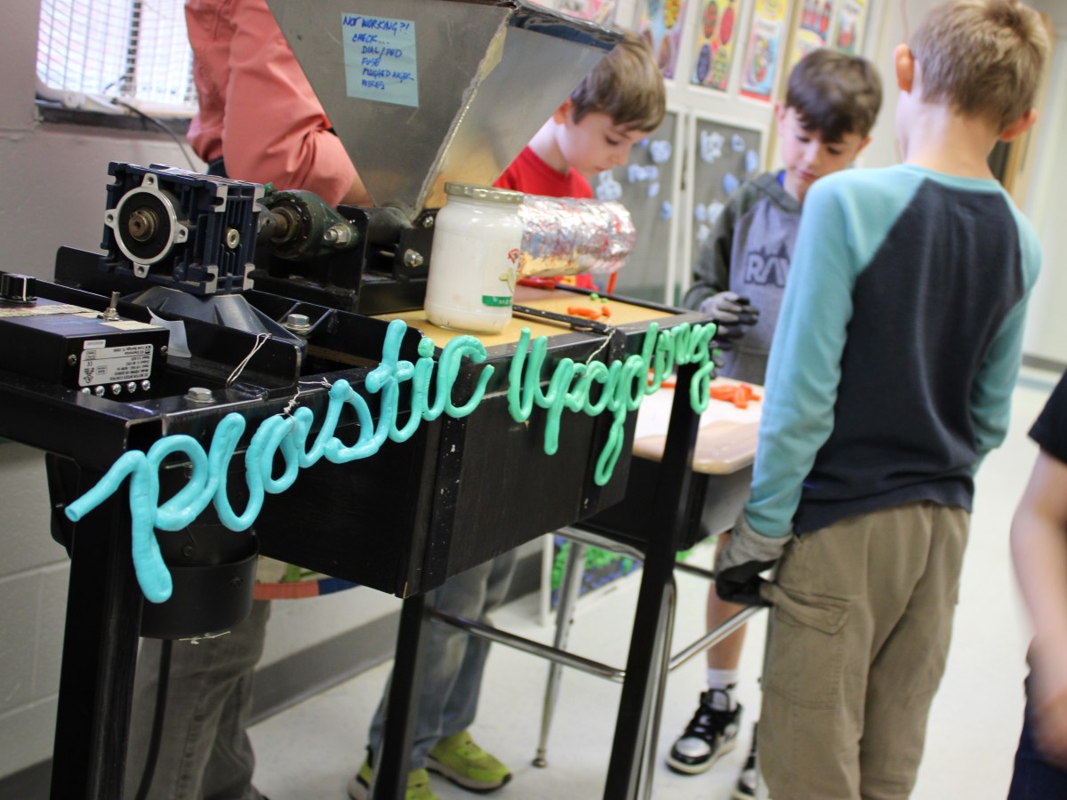 Rangeley Lakes Regional School students collaboratively created a permanent, multi-panel art installation using recycled plastic.