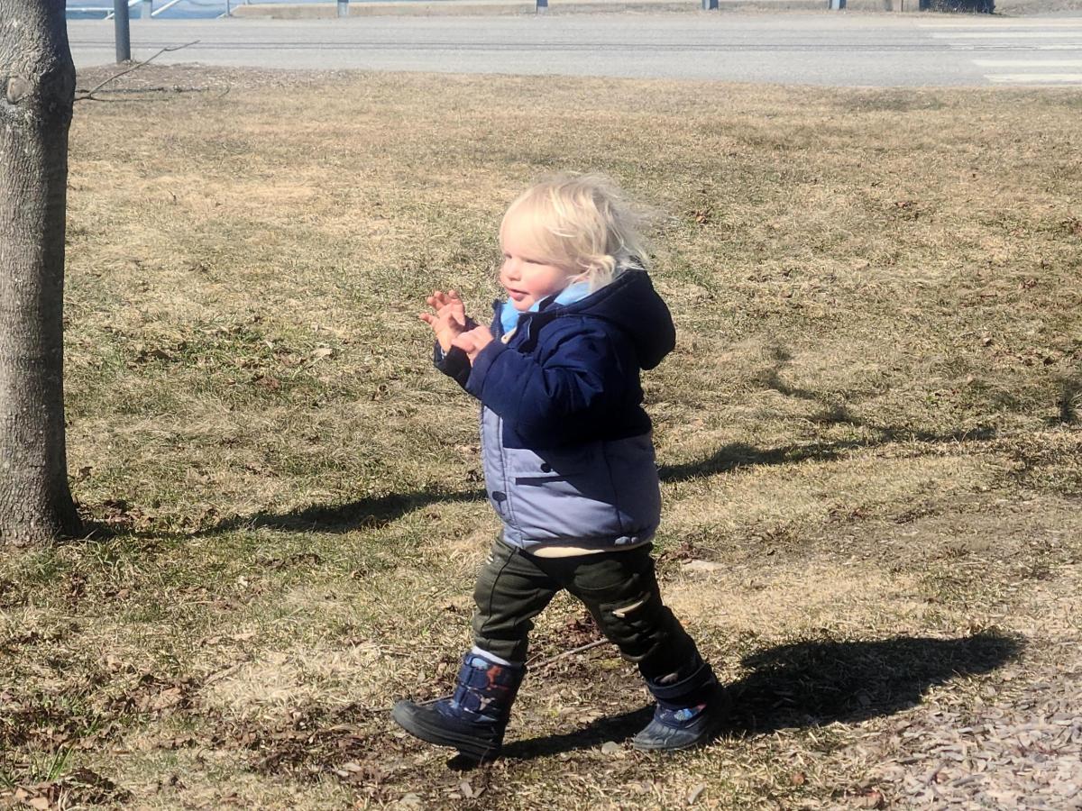 Two-year old Albion Sweet of Jay flitted from the slides across to the gazebo, back to the slides and onward to the merry-go-round all in the space of a few minutes on April 17 while at Bass Park in Wilton.