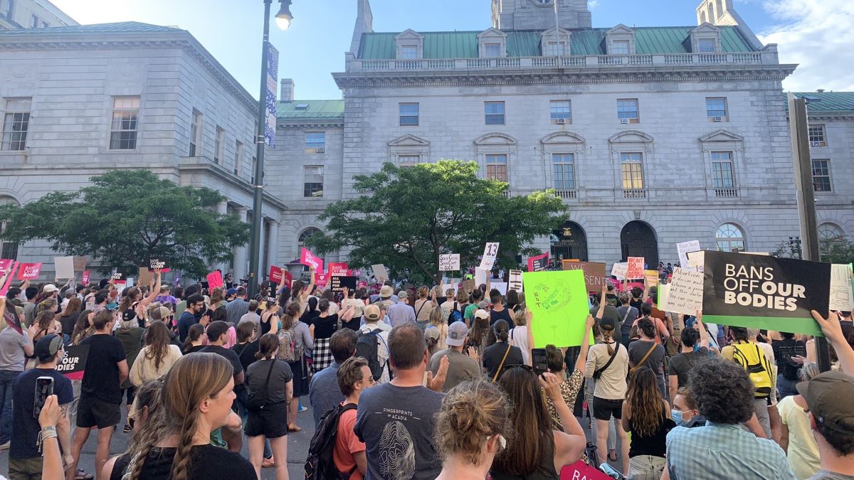 The rally and march, organized by students in the University of Maine at Farmington Democrats, was in response to the June overturning of the landmark Supreme Court case Roe v. Wade, which guaranteed Americans the constitutional right to an abortion.