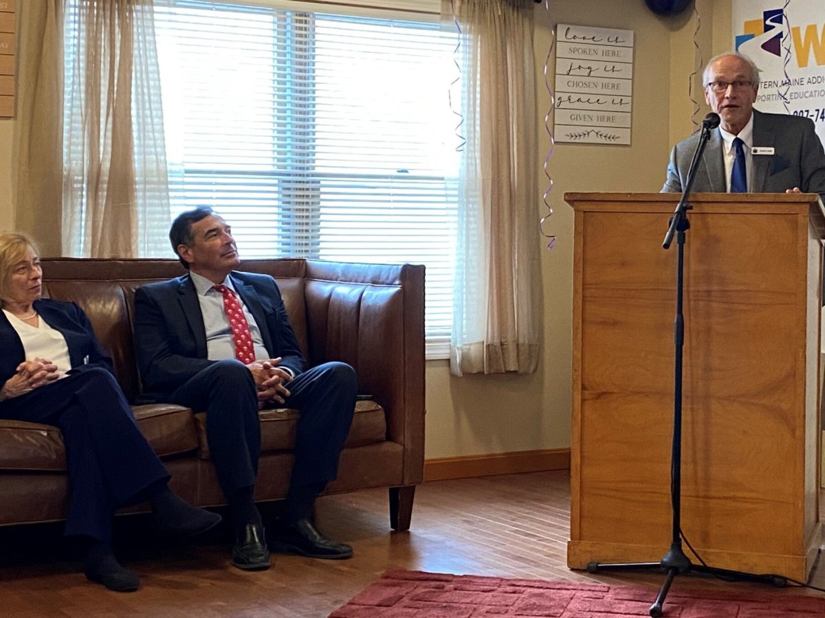 Supporters of the Western Maine Addiction Recover Initiative are joined by Gov. Janet Mills, State Sen. Rick Bennett and representatives of U.S. Sen. Susan Collins, U.S. Sen. Angus King and U.S. Rep. Jared Golden to celebrate the opening of Oxford county’s second addiction recovery center in Norway.