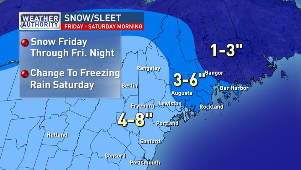 [media-credit name=”WGME” align=”aligncenter” width=”960″][/media-credit] STATEWIDE — Friday’s storm could throw a wrench in Mainers’ holiday travel plans. The storm is expected to bring snow, sleet and freezing rain. Here’s the expected timing of snow and the change to freezing rain Friday through Saturday. pic.twitter.com/agQAPfHKGu — Charlie Lopresti (@CharlieWGME) December 20, 2017 The steadiest snow will […]