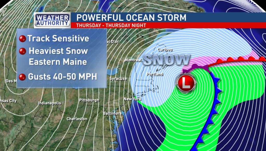 [media-credit name=”WGME” align=”aligncenter” width=”1024″][/media-credit] STATEWIDE — A powerful ocean storm has the potential to bring a few feet of snow and blizzard conditions to parts of Maine. All eyes are on the exact track of the powerful ocean storm Thursday through Thursday night. Its track will determine how much snow Maine will get. Based on […]