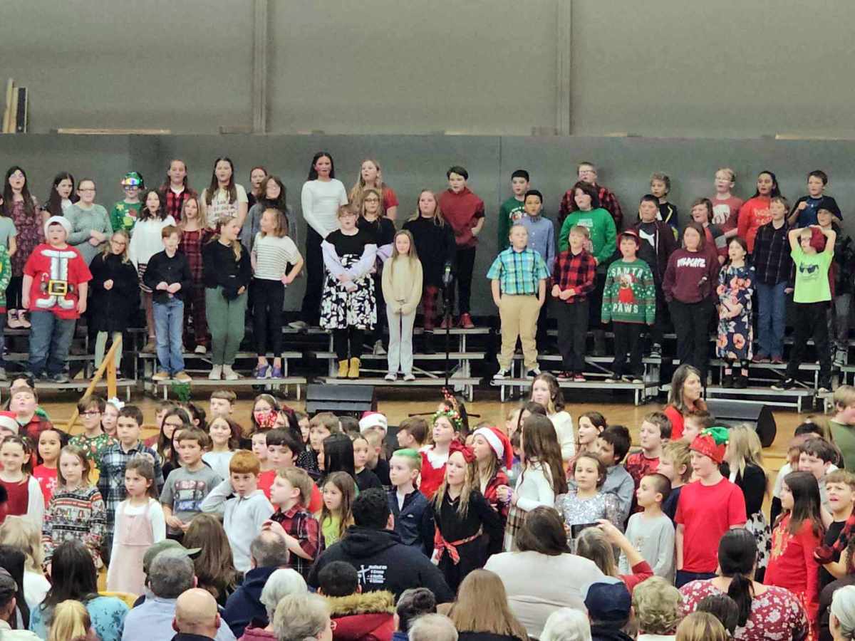 The elementary school concert on Dec. 16 first featured performances by each of the three grades – third, fourth and fifth. The three grades then joined together to sing “Rudolf, the Red-Nosed Reindeer.”