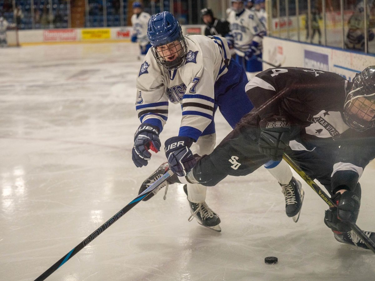 Will Routhier makes key saves and Jacoby Oliveira scores game-winner in overtime to lift the Blue Devils over the Saints.