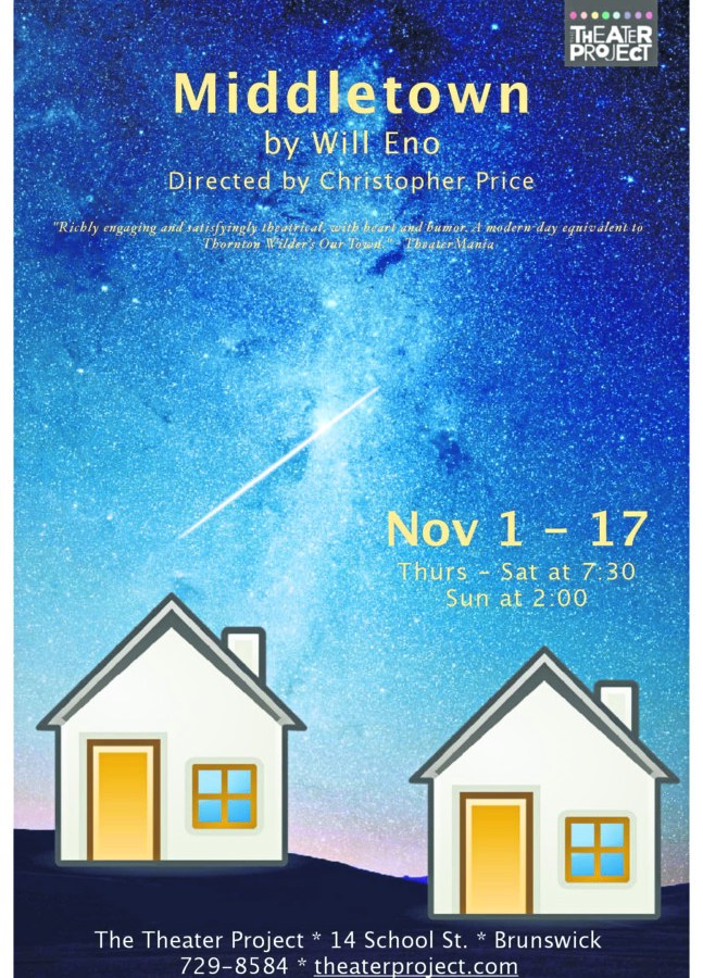 BRUNSWICK — The Theater Project will present “Middletown,” written by Will Eno and directed by Christopher Price, opening on Friday, Nov. 1. Everyone is welcome to attend an opening night reception with refreshments and an opportunity to meet the cast, crew and director after the show. “Middletown” is a deeply moving and funny play exploring […]
