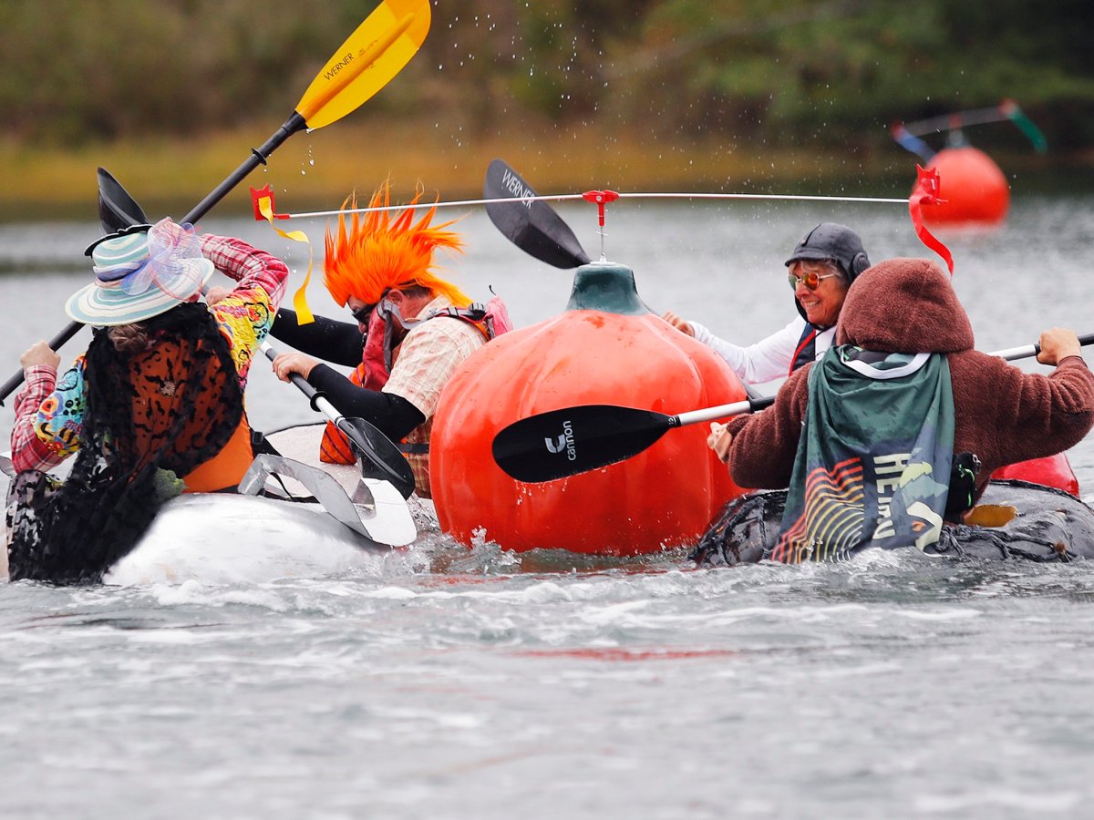 The town’s Pumpkinfest draws crowds for the giant carved-out pumpkins racing down the river and other gourd-related events over the holiday weekend.