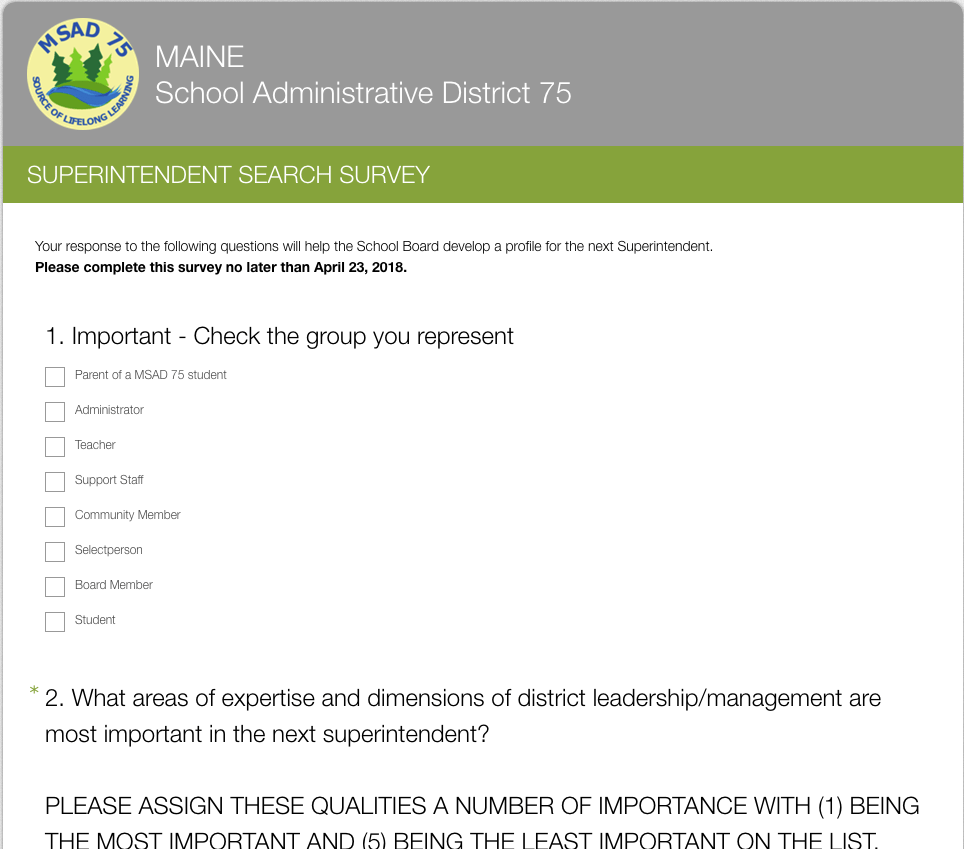 TOPSHAM — School Administrative District 75 is soliciting residents’ input through an online survey as it begins searching for a new superintendent of schools. Brad Smith, superintendent since 2011, plans to retire July 1. The SAD 75 board has planned to consult the Maine School Management Association in finding his replacement. If a new school […]