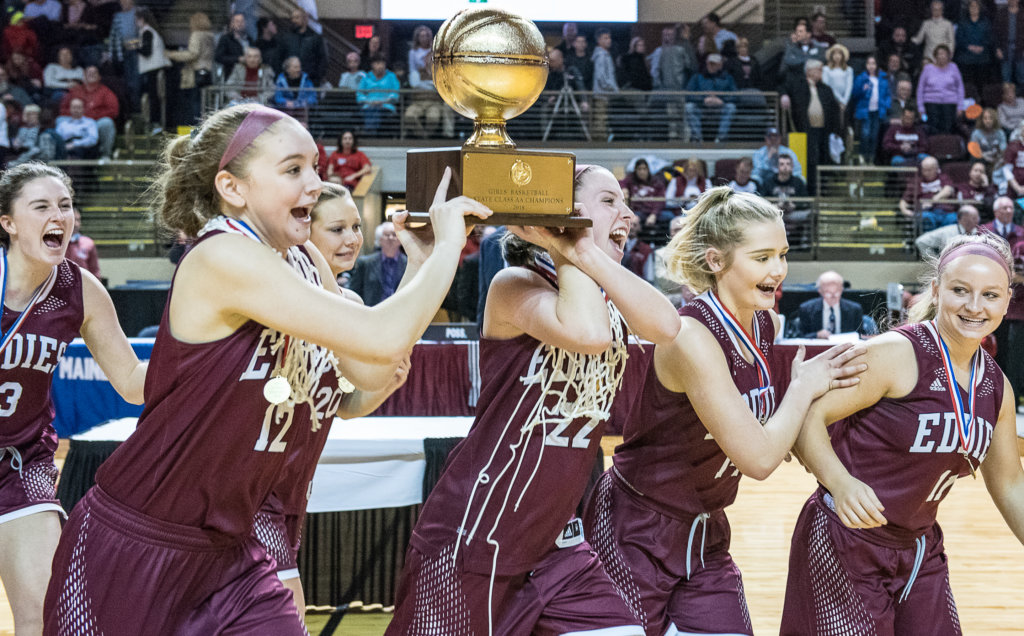 The Edward Little girls’ basketball team won its first state championship Saturday in a 50-49 thriller over Gorham at the Cross Insurance Arena. Grace Fontaine hit the winning free throw in the game’s final second. The boys followed suit, earning their first gold ball since 1946 with a 41-36 win over Scarborough.