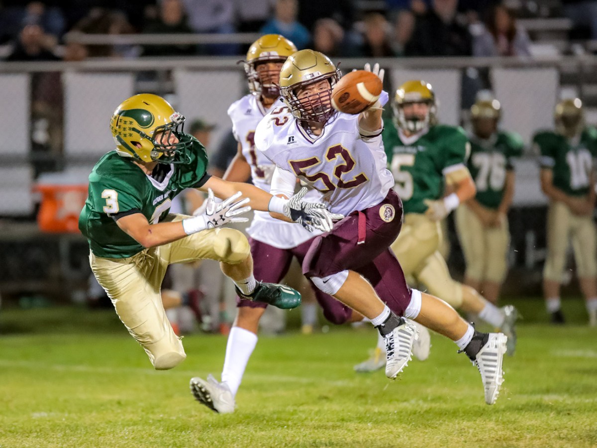 Oxford Hills’ Alex Turner keeps his eyes on the ball while defended by Thornton Academy’s Ean Patry (52). While the play was ruled incomplete, off-setting penalties, including pass interference on Patry, resluted in replaying the down. PARIS — Thornton Academy’s option offense was too overwhelming for Oxford Hills as the Trojans ran to a 40-0 […]