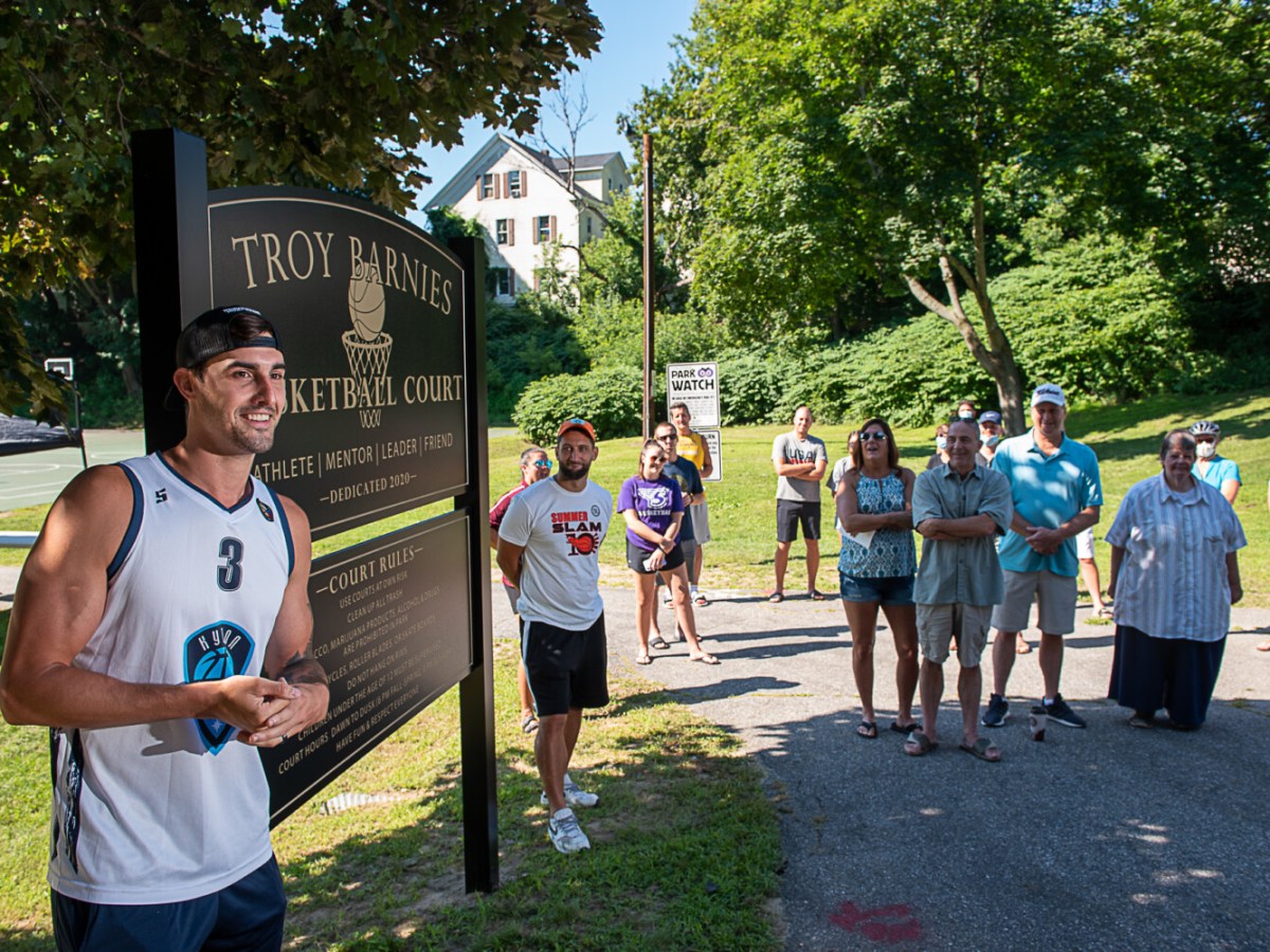 Before the start of his annual basketball clinic at Union Street Park, Barnies, a professional basketball player who grew up in Auburn, was surprised with a ceremony naming a basketball court after him.