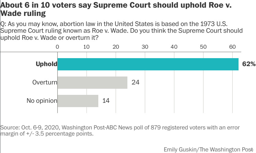 Slim majority of voters oppose Barrett hearings, consistent majority support Roe v. Wade, poll finds