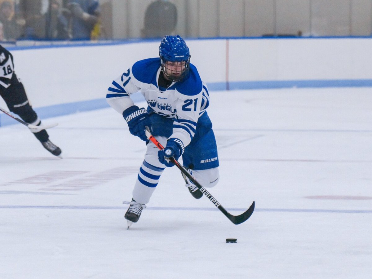 UNE defenseman Liam Darcy is a hockey Mr. Clean