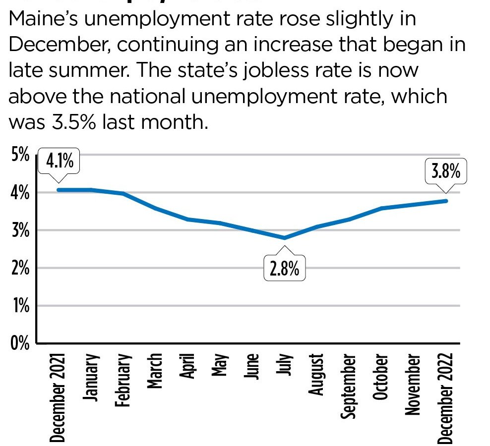 Maine unemployment fell below 3% in January